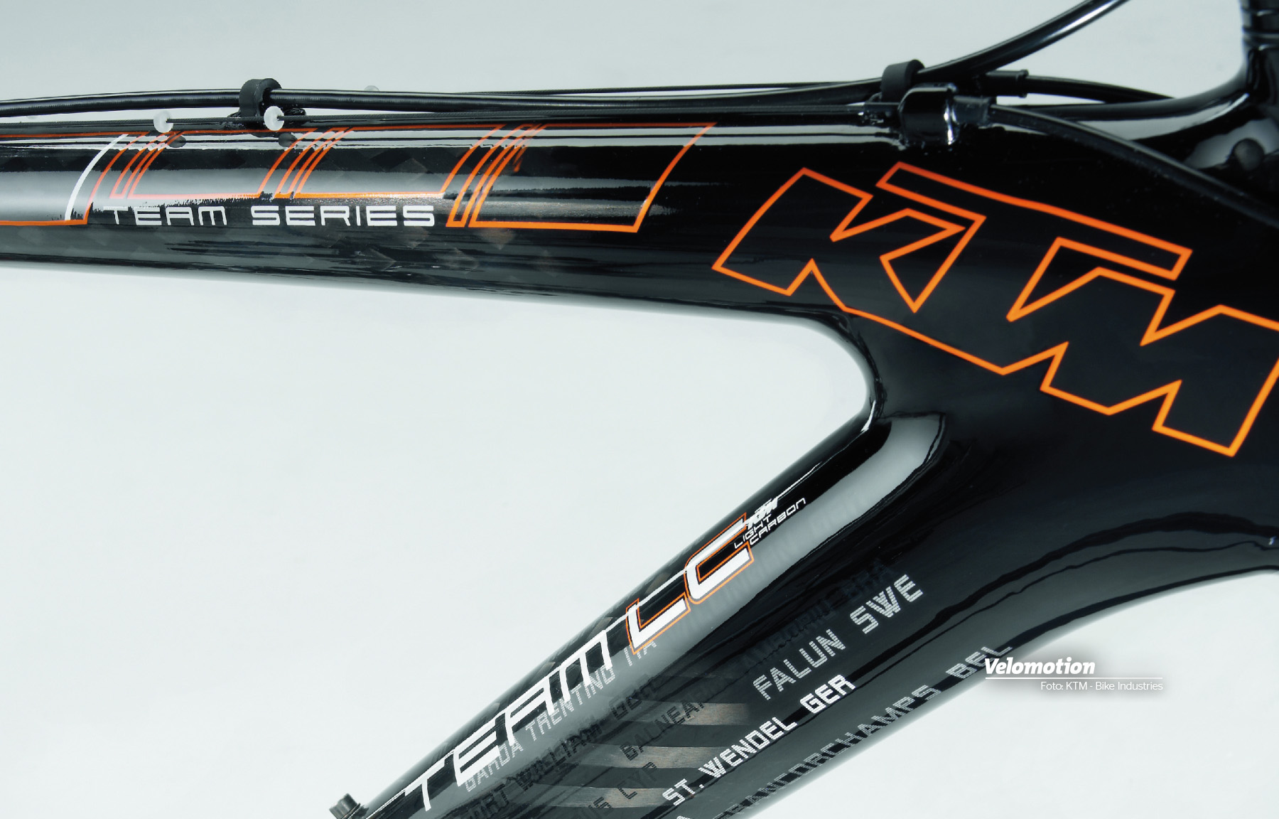 Im Jahr 2006 folgte ein weiterer Meilenstein in der Entwicklung von KTM und man konnte die ersten drei Modelle mit Carbonrahmen präsentieren: Während sich das KTM Team LC und das KTM Chronos LC eher abseits der Straße wohl fühlten, konnte man mit dem Strada LC auch das erste Rennrad mit Kohlefaserrahmen vorstellen – das Topmodell kam standesgemäß mit Dura-Ace Gruppe, Carbongabel, Ksyrium ES LRS von Mavic und brachte es so auf ein für damalige Verhältnisse sensationelles Gewicht von 6,8kg – doch mit 4.399€ war es für die Zeit auch sehr teuer.