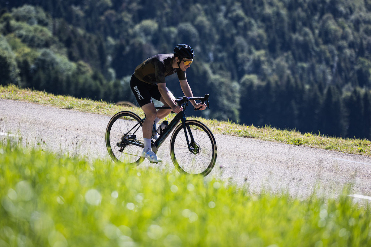 Wir hatten nämlich die Möglichkeit die neue Roadmachine AMP schon vor Launch bei BMC in der Schweiz zu testen. Dafür hatte man sich die Strecke der 3. Etappe der Tour de Suisse ausgesucht, welche über die anspruchsvollen Anstiege des Juras führte und am BMC Standort in Grenchen mit knapp 3000 Höhenmetern zu Ende ging.