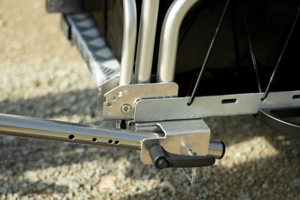 Der Anhänger wird nur teilweise montiert geliefert. Damit will man die Verkaufskosten durch geringere Montagekosten, Verpackungskosten und Transportkosten verringern. Der Anhänger kostet 529 Euro. Eine detaillierte Montageanleitung und das benötigte Spezialwerkzeug werden mitgeliefert. Schon auf den ersten Blick bzw. bei der ersten Berührung fühlt sich der Anhänger hochwertig an. Wenig Kunststoff, viel Aluminium und das ist hochwertig eloxiert oder pulverbeschichtet. Die Anhängerkupplung kommt von Branchenprimus Weber, so ist neben Qualität auch die Ersatzteilversorgung sehr gut und es gibt Lösungen für praktisch jedes Achssystem, dann da wird der Anhänger ja am Rad befestigt.