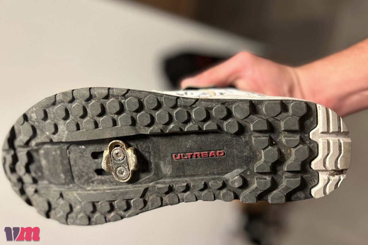 Der MTB-Schuh auf Profi-Niveau bringt alles mit, was man für Bestzeiten braucht. Dazu gehört erst einmal eine steife, dabei maximal griffige Sohle, bei der Shimano von einer um 25 % verbesserten EVA-Härte im Bereich der Mittelsohle spricht. Das steht für eine sehr steife Sohle, was sich im Praxistest bestätigt: Die Kraftübertragung ist optimal, was natürlich auch die Füße entlastet – punktueller Druck bleibt aus, sodass der Tragekomfort stimmt. Dazu muss man allerdings gleich sagen, dass der Shimano GE900HS sehr schmal geschnitten ist – er sollte eine Nummer größer gekauft bzw. bestellt werden.