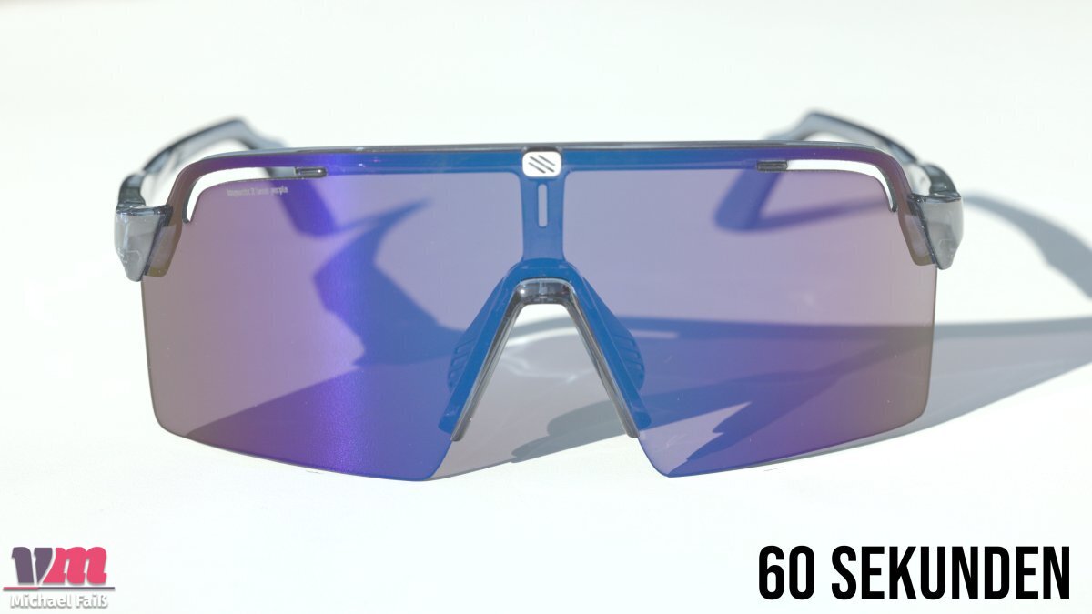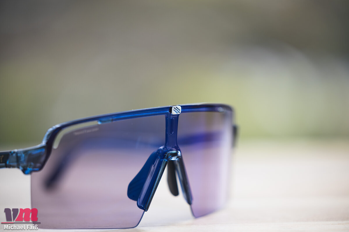 Schon beim ersten Anfassen wird klar: Die Spinshield Pro spielt in einer eigenen Liga. Mit gerade einmal 24 Gramm teilt sie sich den Titel für das leichteste Modell im Test und ist auf der Nase kaum zu spüren. Die Verarbeitungsqualität ist, um es kurz zu machen, absolut makellos. Der minimalistische Rahmen fühlt sich extrem robust und wertig an. Hier knarzt nichts, hier hat nichts Spiel. Die Bügel rasten satt und präzise ein, und die gummierten Nasenpads lassen sich wunderbar flexibel an jede Nasenform anpassen. Die Abmessungen sind mit einer Glashöhe von 61 mm und einer Breite von 147 mm gewaltig und versprechen eine enorme Abdeckung. Angesichts dieser Premium-Anmutung ist es allerdings schon fast frech, dass Rudy Project bei einem Preis von 214,90 € kein schützendes Hartschalen-Etui beilegt – ein Detail, das in dieser Preisklasse eigentlich Standard sein sollte.