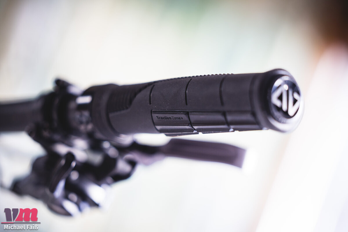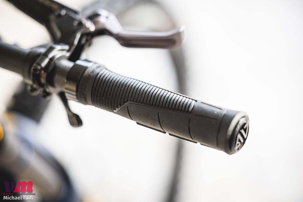 Dieser enorme Grip hat jedoch seinen Preis beim Komfort. Wer gerne ohne Handschuhe fährt, wird eine gewisse Eingewöhnungszeit benötigen, da die Textur sehr präsent ist und die Haut durchaus fordert. Mit Handschuhen hingegen ist die Verbindung zwischen Fahrer und Bike nahezu untrennbar. Ein kleiner Wermutstropfen ist der Klemmring, der für unseren Geschmack etwas zu breit baut und bei großen Händen außen leicht stören kann. Die auswechselbaren Kunststoff-Endkappen erwiesen sich hingegen als robust: Bei Feindkontakt mit Bäumen oder Boden schützen sie den Griffgummi effektiv und lassen sich im Worst-Case günstig ersetzen.