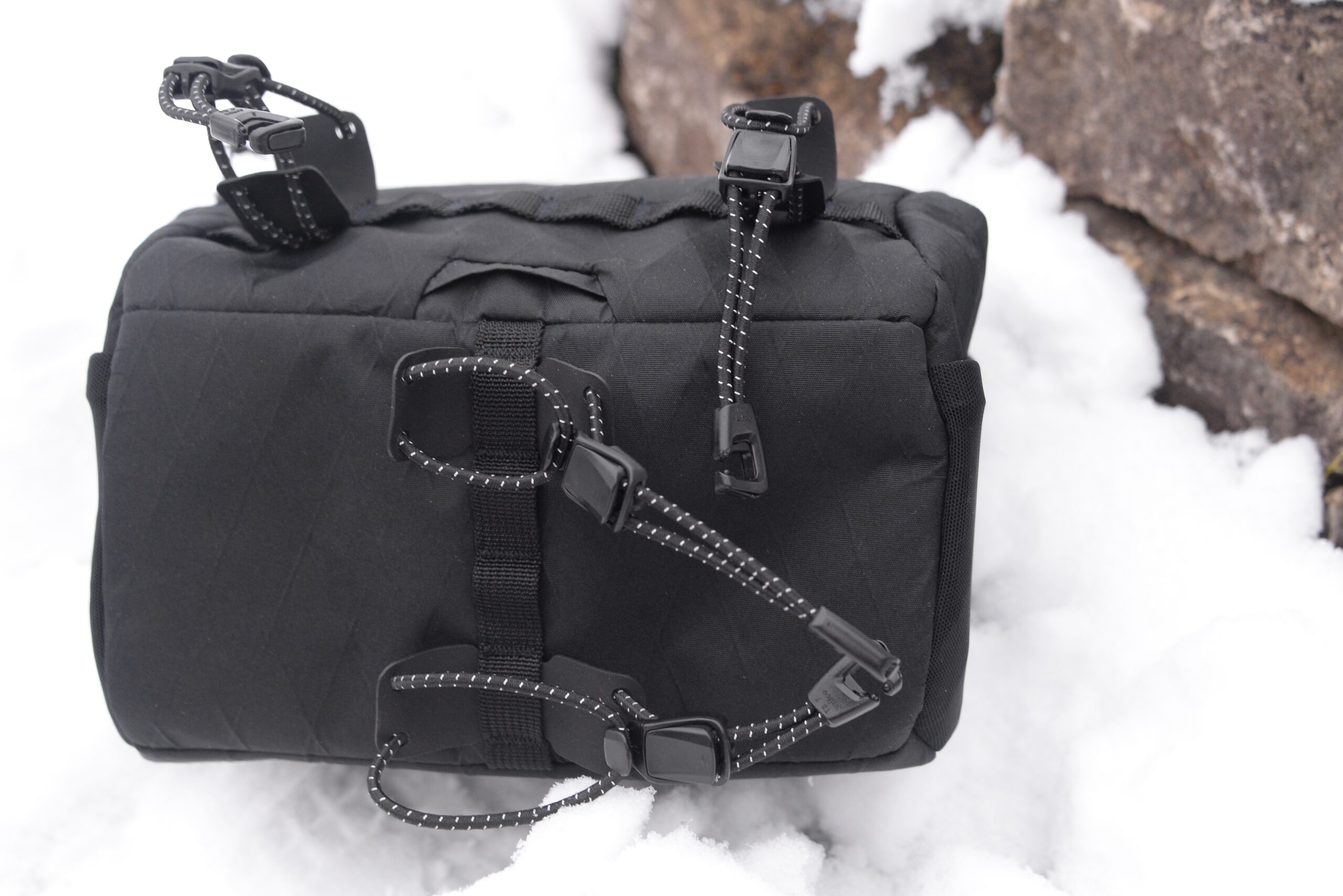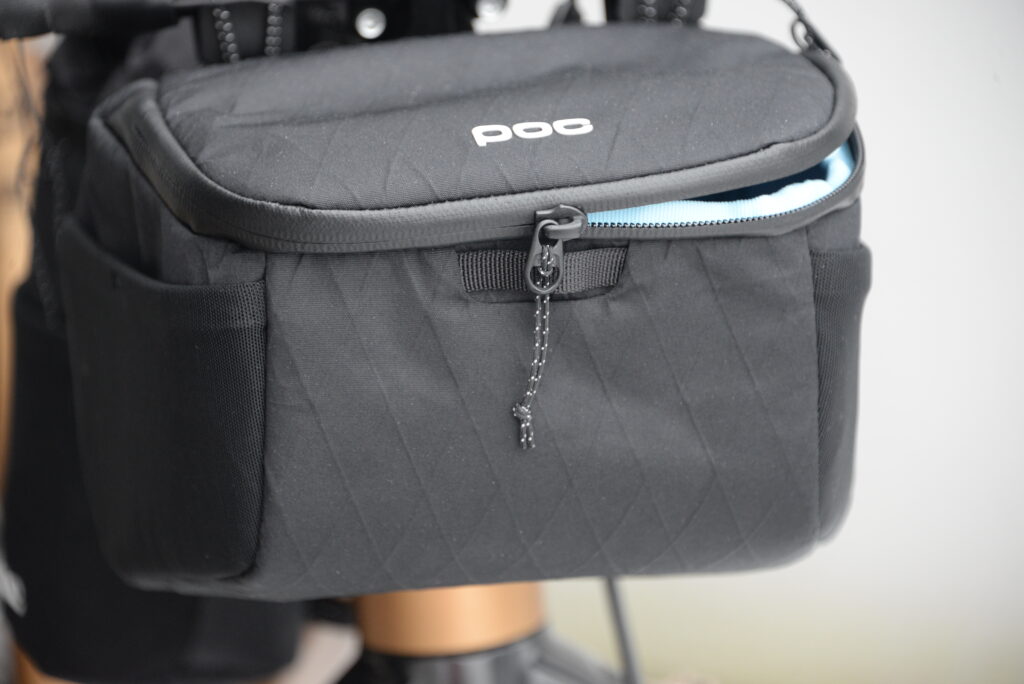 Die Ultra Bar Bag 4L von POC ist eine hochwertige Lenkertasche, die aus robustem, wasserdichtem Material mit dem Namen X-Pac RX15 besteht und mit einem wasserdichten Doppelreißverschluss schützt. Besonders praktisch ist die Öffnung an der Lenkerseite für Kabel oder Trinkschlauch. Neben dem Hauptfach gibt es seitliche Netztaschen, in denen beispielsweise ein Smartphone sicher verstaut werden kann, sowie drei Netztaschen im Inneren für zusätzlichen Stauraum. Die Befestigung erfolgt über ein flexibles System aus variabel anpassbaren Gummies, die eine einfache und stabile Montage am Lenker ermöglichen. Die Tasche punktet insgesamt mit durchdachter Funktionalität, hochwertiger Verarbeitung und einem durchdachten Design – ideal für kleine Bikepacking-Abenteuer.