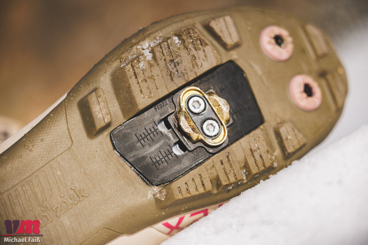 Klickt man ein, merkt man schnell, dass fizik seine Wurzeln im Performance-Bereich hat. Der Steifigkeitsindex von 5 ist für den Gravel- und Trail-Einsatz sehr gut gewählt. Die Kraftübertragung ist direkt und effizient; man hat nie das Gefühl, Energie in einer weichen Sohle zu verpuffen. Dennoch bietet der Nylon-Unterbau genug Dämpfung, um auf ruppigen Wurzelpassagen nicht jeden Schlag ungefiltert an den Fuß weiterzugeben.