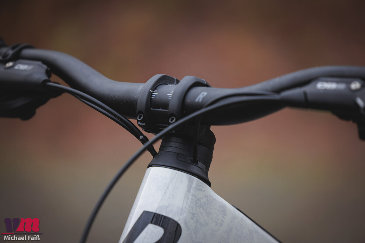 Ein Detail, das die Geister scheiden wird, ist die Zugverlegung. Rose führt alle Leitungen durch den Steuersatz in den Rahmen. Das sorgt für eine aufgeräumte Optik, ist aber für Hobbyschrauber ein Albtraum, wenn mal ein Lagerwechsel oder andere Reparaturen anstehen. Dazu kommt ein speziell designter Vorbau, der formschlüssig in die Spacer übergeht. Das sieht schick aus, bedeutet aber auch: Wer den Lenker tieferlegen möchte, muss den Gabelschaft kürzen, da der Vorbau keinen Überstand zulässt.