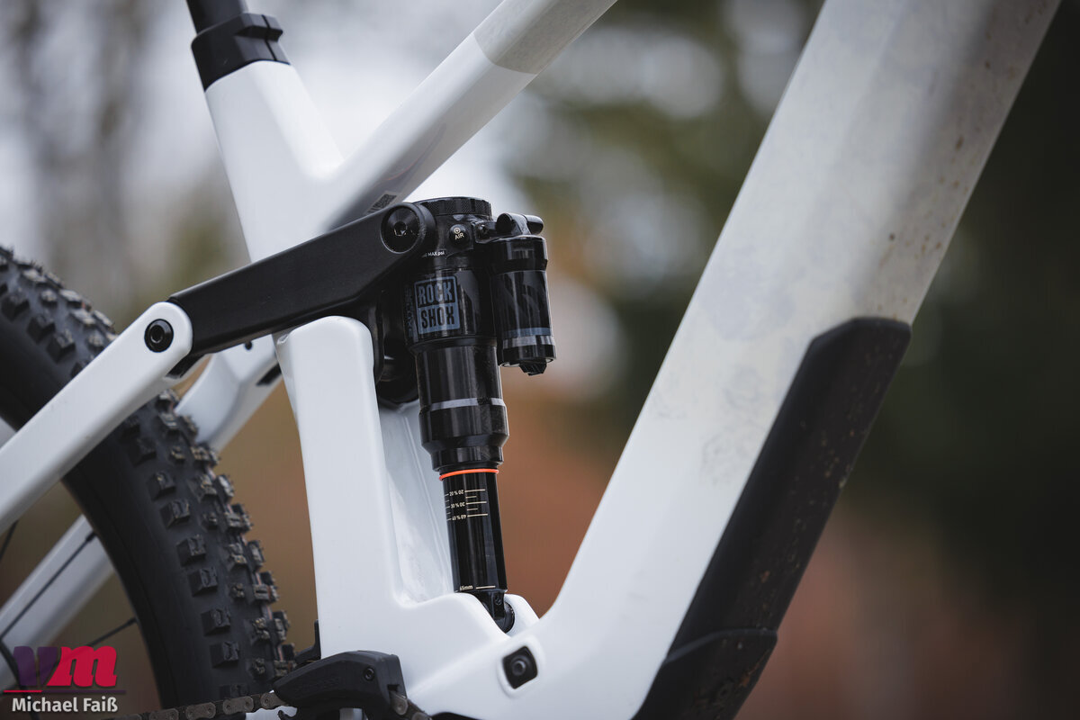 Der Hinterbau agiert eher linear. Er nutzt den Federweg bereitwillig, was für viel Komfort sorgt („Sofa-Feeling“), führt aber bei aggressiver Fahrweise oder schweren Fahrern dazu, dass der Dämpfer im mittleren Bereich etwas durchrauscht. Hier lohnt es sich, mit Volumen-Spacern im Dämpfer nachzuhelfen, um mehr Gegenhalt zu generieren.