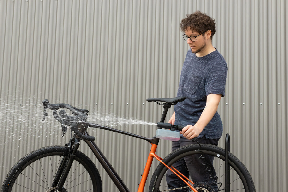Der OC 4 ist ein Niederdruckreiniger – und genau so muss man ihn auch einordnen. Im Test entfernte er Staub, leichten Schlamm und typische Verschmutzungen an Rahmen, Reifen und Antriebsteilen zuverlässig. Die Wasserabgabe reicht aus, um lose Partikel zu lösen und Schlammspuren abzuspülen, ohne dabei Komponenten unnötig zu belasten.