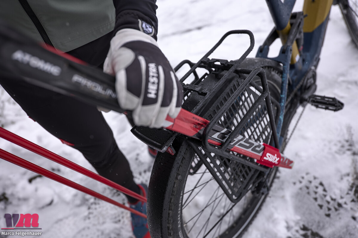 Das eigentliche Alleinstellungsmerkmal dieses Modells ist jedoch das Heck. Um Kletterseile, Rucksäcke oder sogar Tourenski sicher zum Einstieg zu transportieren, wurde ein spezieller, extrem robuster Gepäckträger verbaut. Die massive Metallkonstruktion bietet vielfältige Befestigungsmöglichkeiten und unterstreicht den Expeditions-Charakter des Bikes. Hier wurde Funktion ganz klar über filigrane Design-Ansprüche gestellt.