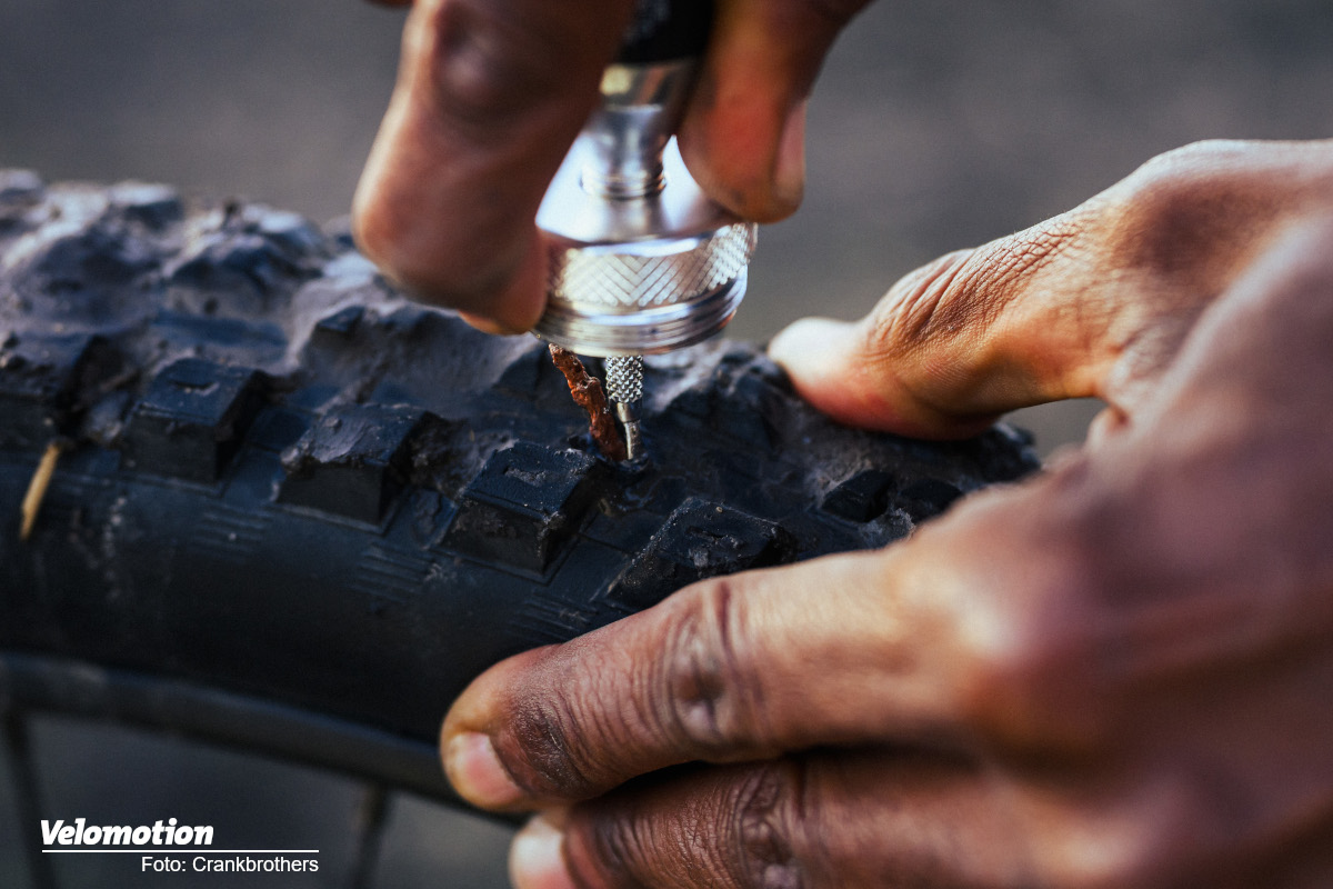 Beim neuen Plug Mate von Crankbrothers handelt es sich um eine clevere Lösung zur sicheren Fixierung von Reifenstopfen. Er wurde entwickelt, um auch unter extremen Bedingungen, wie harten Aufschlägen, Landungen oder Bremsmanövern, fest an Ort und Stelle zu bleiben. Im Gegensatz zu herkömmlichen Stopfen, die verrutschen oder sich lösen können, verfügt der Plug Mate über ein einzigartiges, seitlich drehendes Design, das sich fest im Reifen verankert.