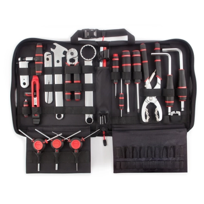 Feedback Sports Werkzeugtasche listet die Kernkomponenten sehr konkret. Dazu gehören u. a.: