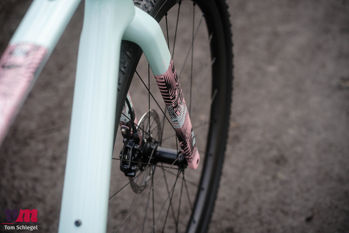 Der Blick zurück in die Modellgeschichte offenbart ein weiteres interessantes Detail: Die zwei unterschiedlichen Versionen des Addict Gravel 10, die Velomotion 2022 vorstellte, waren deutlich (6.499 Euro mit Shimano GRX Di2 2×11) bzw. merklich teurer (5.499 Euro mit SRAM Force AXS 2×12) als das aktuelle Modell. Das Addict Gravel 10 des Jahres 2023 kostete mit SRAM Force 2×12 und DT-Swiss-Radsatz sogar satte 6.699 Euro. Fürs 2026er Bike in der Farbe Gelato Blue/Pink werden dagegen nur 5.199 Euro fällig. Also: jetzt Highend-Bike zum Schnäppchenpreis oder aufgefrischter Oldie?