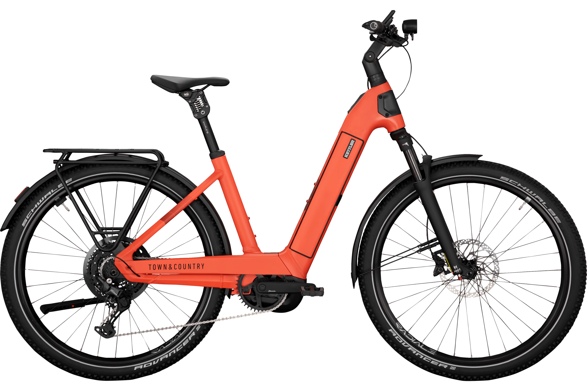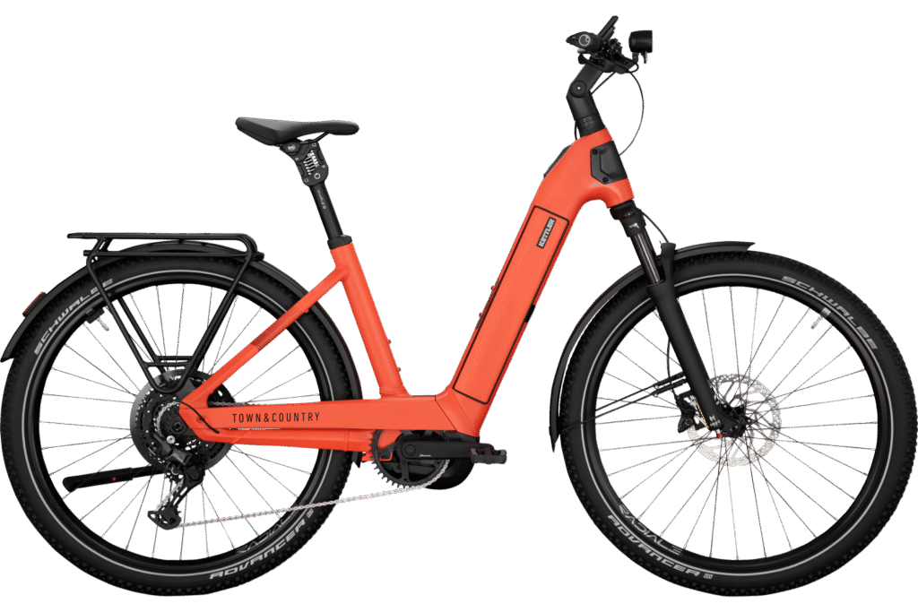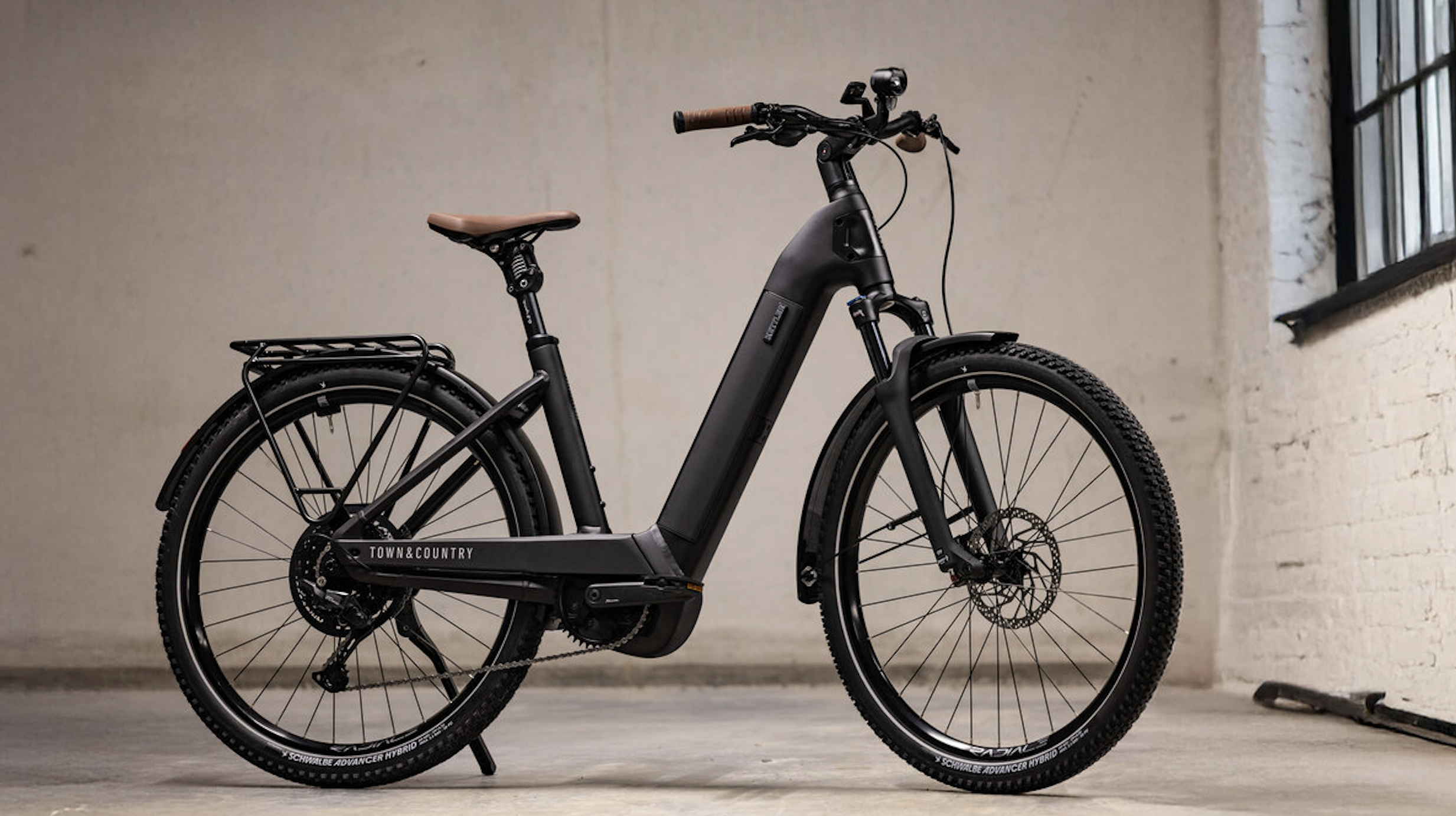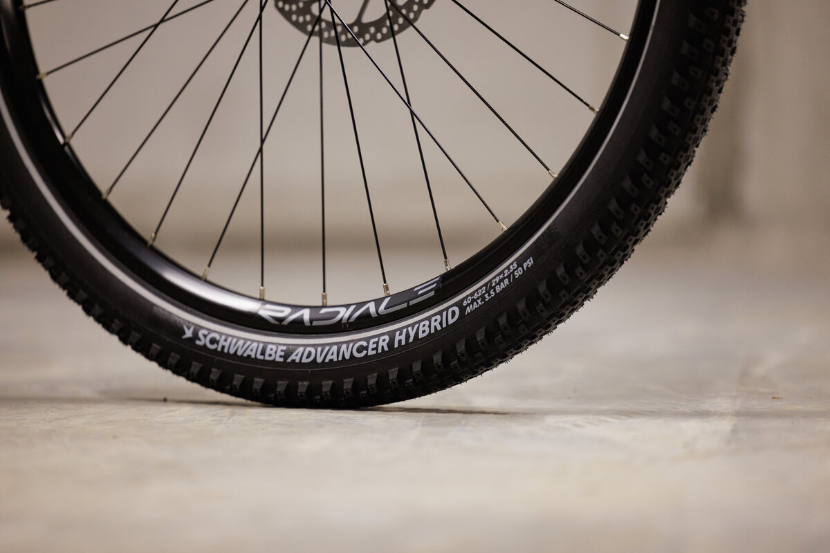 Unterstützt wird dieser Komfort durch die „Schwalbe Advancer Pro Hybrid“-Bereifung in 60 mm Breite (2.35 Zoll). Der Reifen verfügt über einen glatteren Mittelsteg für guten Lauf auf Asphalt und ausgeprägte Seitenstollen für Grip in Kurven auf losem Untergrund.