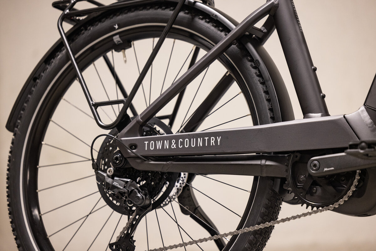 Obwohl das Town & Country CX10 ein Hardtail ist (also keinen gefederten Hinterbau besitzt), wurde viel Wert auf den Fahrkomfort gelegt. An der Front arbeitet eine SR-Suntour-Luftfedergabel, die sich präzise auf das Fahrergewicht einstellen lässt.