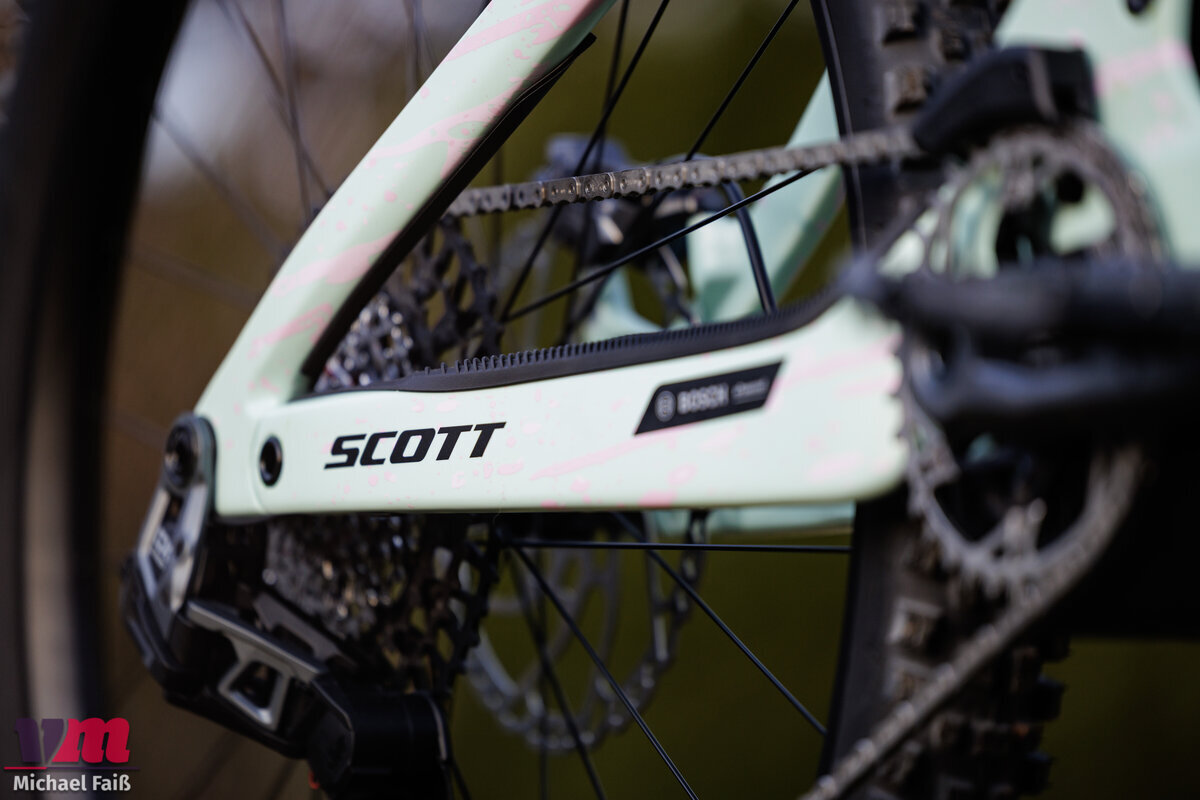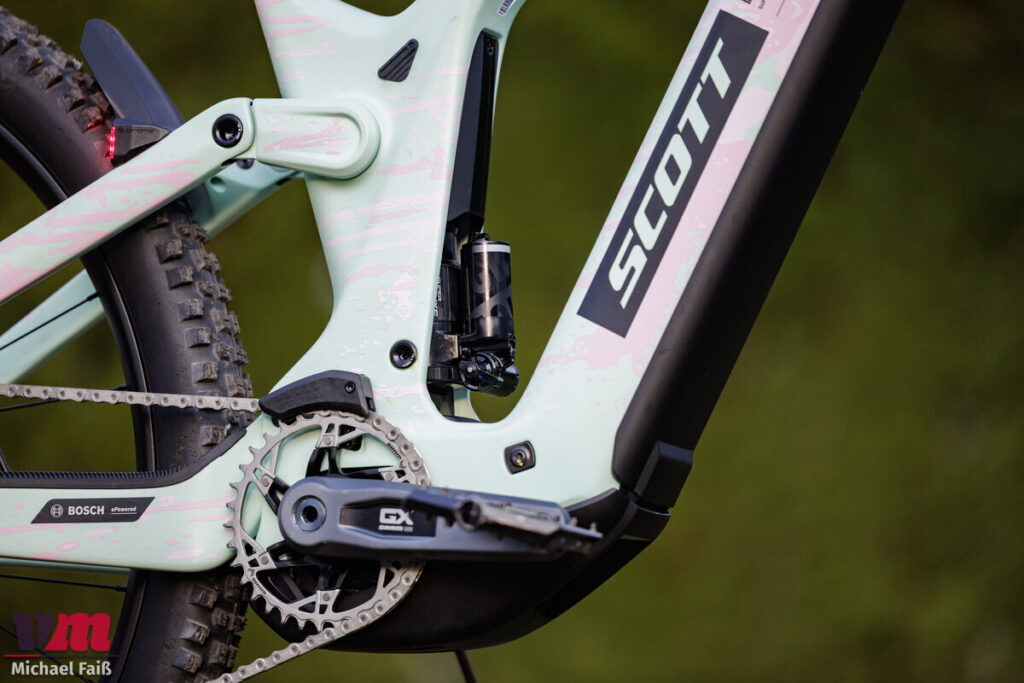 Ein absolutes Highlight ist die Reifenwahl: Scott spezifiziert das Bike mit den Schwalbe Radial-Reifen (Magic Mary an der Front, Albert am Heck), beide mit robuster Gravity-Karkasse und weichen Gummimischungen. Trotz dieser extrem potenten und schweren Reifen sowie dem großen 800-Wh-Akku bleibt die Waage bei unserem Testbike bei sehr guten 24,2 kg stehen (die Herstellerangabe liegt bei 24,3 kg).