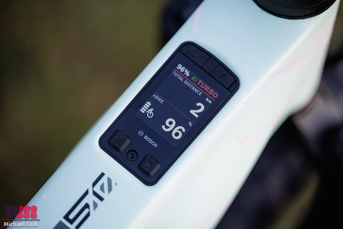 Als Kommandozentrale dient das Bosch Kiox 400C Display, welches formschön und bündig in das Oberrohr integriert wurde. Scott verzichtet hier auf klobige Kunststoffrahmen, wodurch das Display fast nahtlos mit dem Carbonrahmen verschmilzt. Gesteuert wird das System intuitiv über die kompakte Bosch Mini Remote am Lenker.