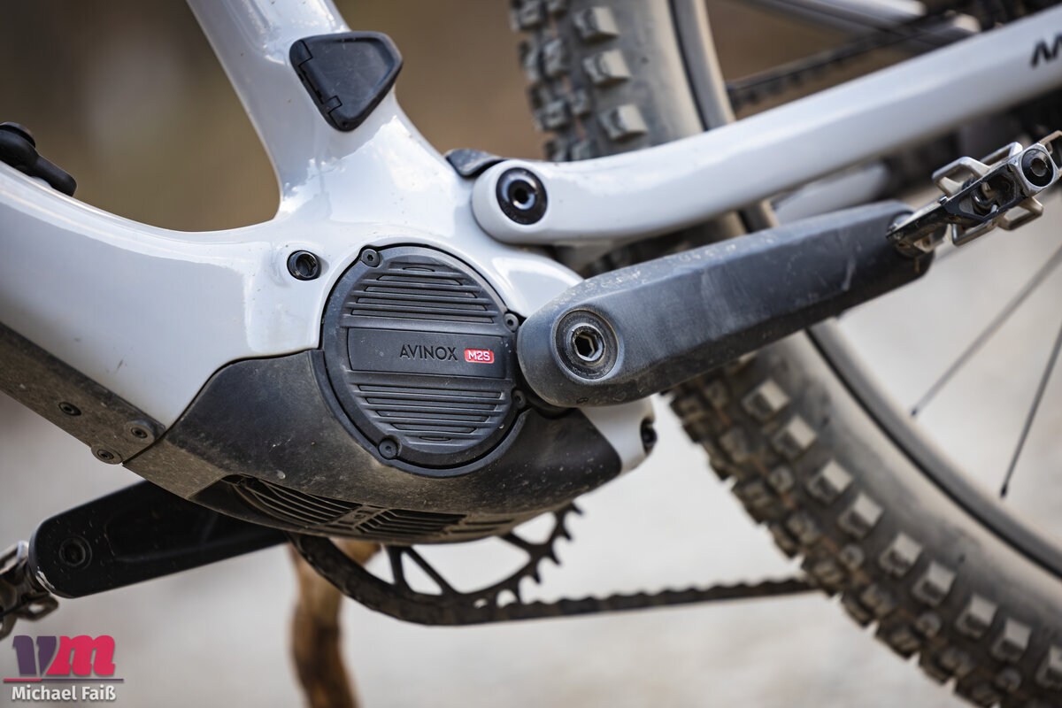 Das absolute Highlight des Bikes ist und bleibt das Antriebssystem. Der neue Avinox M2S Motor behält das kompakte Volumen seines Vorgängers bei und wiegt lediglich 2,59 Kilogramm. Dennoch liefert das Aggregat Leistungsdaten, die in der Welt Full-Power-Motoren ihresgleichen suchen: 1500 Watt Spitzenleistung und ein maximales Drehmoment von 150 Nm im Boost-Modus (130 Nm in den Modi Trail, Turbo und Auto). Amflow hat hier durch den Einsatz von Flachdrahtwicklungen und optimierten Stirnradgetrieben nicht nur die Leistung gesteigert, sondern auch die Hitzeentwicklung und den Tretwiderstand ohne Motorunterstützung signifikant reduziert (minus 41 Prozent).