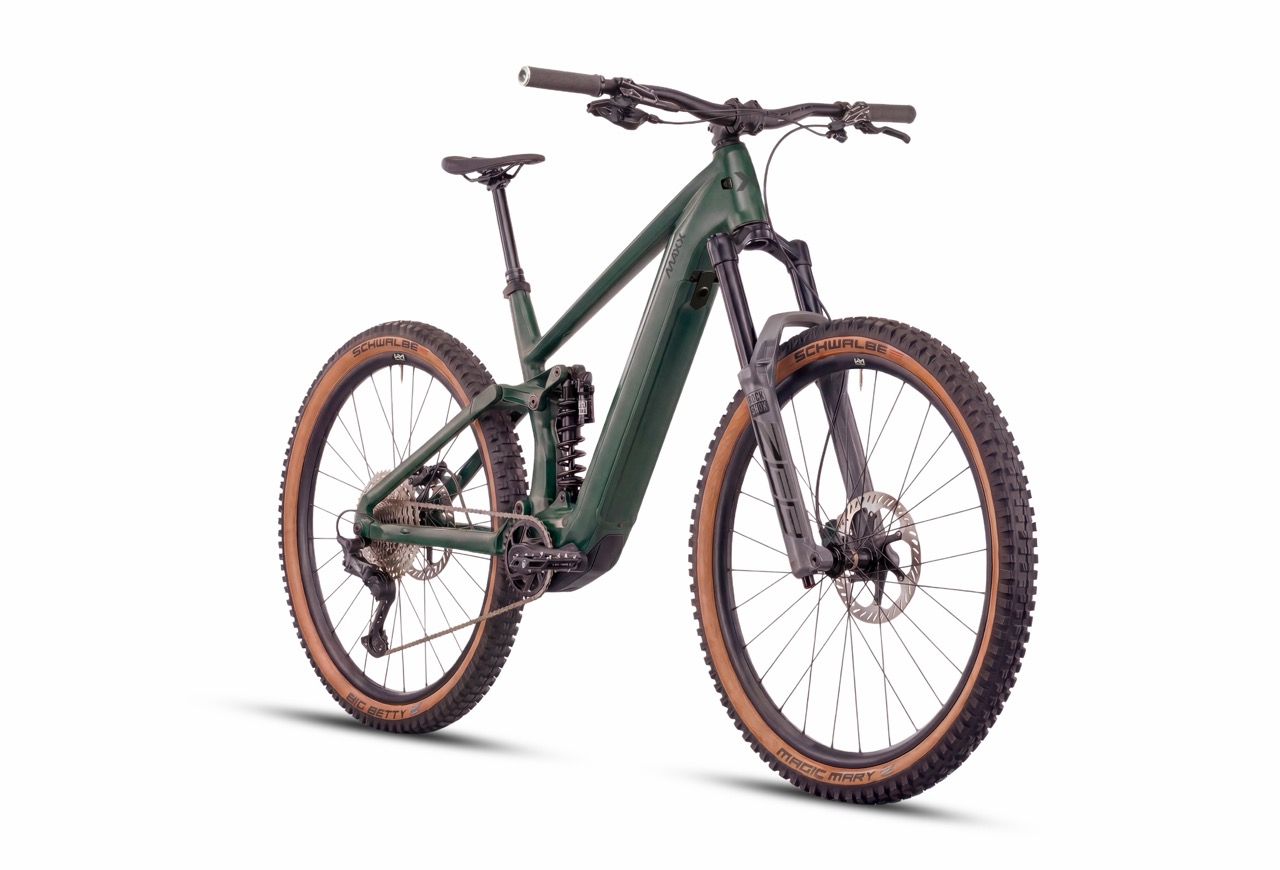 Das Maxx Fab.4 Ela der deutschen Fahrradmanufaktur ist ein federwegsstarker Enduro-Bolide mit der Motorpower des brandneuen Avinox M2 Motors in der hochwertigen S-Ausführung. Ab Werk wird dieser von einer entnehmbaren 600 Wh Batterie gespeist, gegen einen Aufpreis von 199 € ist aber auch ein 800 Wh Akku drin. Insgesamt kommt das Fab.4 Ela auf bis zu 1.300 W Leistung und 150 Nm Drehmoment im Boost-Modus. Überhaupt ist das Bike dank des Maxx-typischen Konfigurators vielfältig anpassbar. Die Eckdaten bleiben aber immer gleich: 29″ Laufräder, 170 mm Federweg an der Gabel und 160 mm Heckfederweg, verwaltet von einem Horst-Link-Hinterbau. Preislich geht es bei 6.699 € (UVP) los.