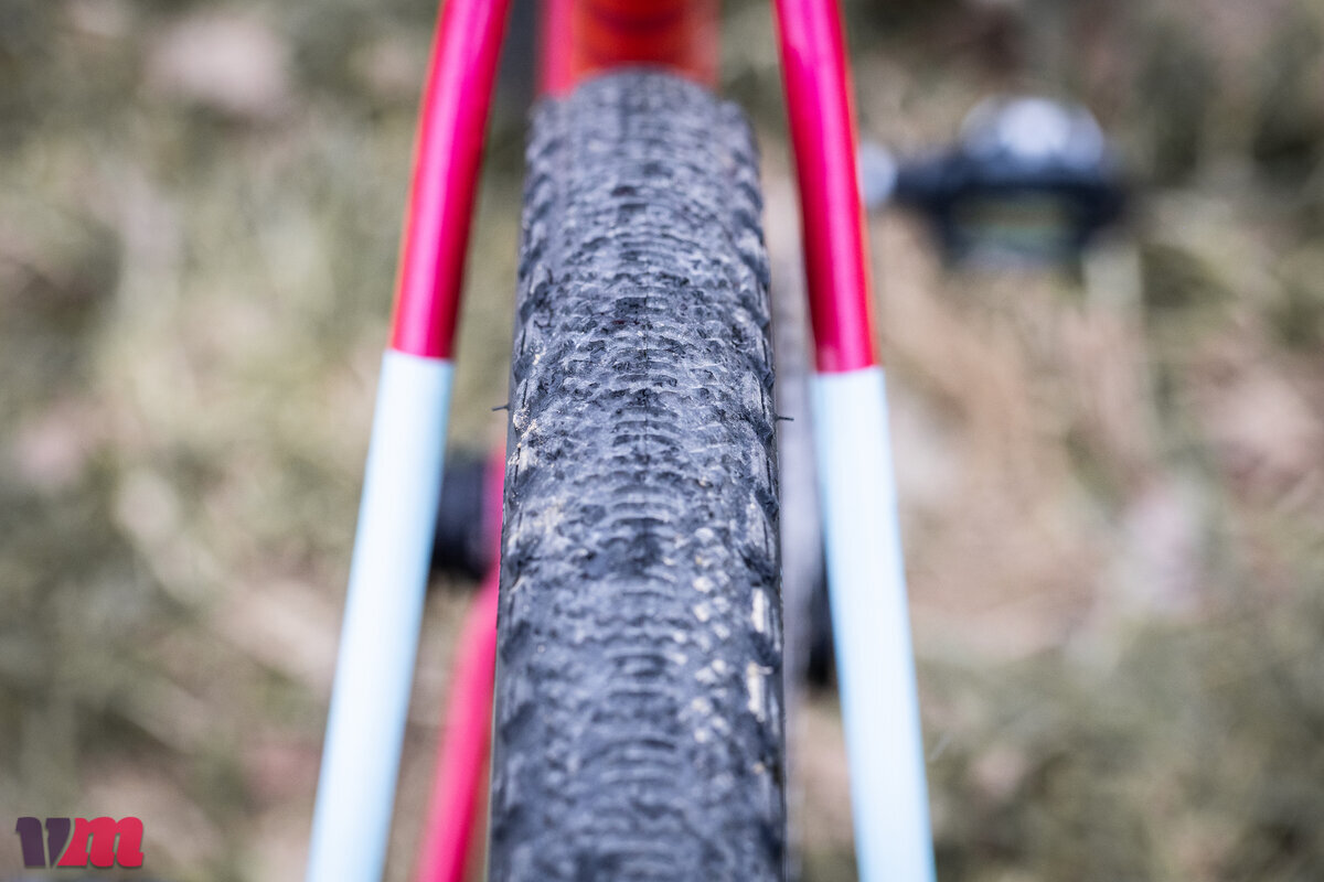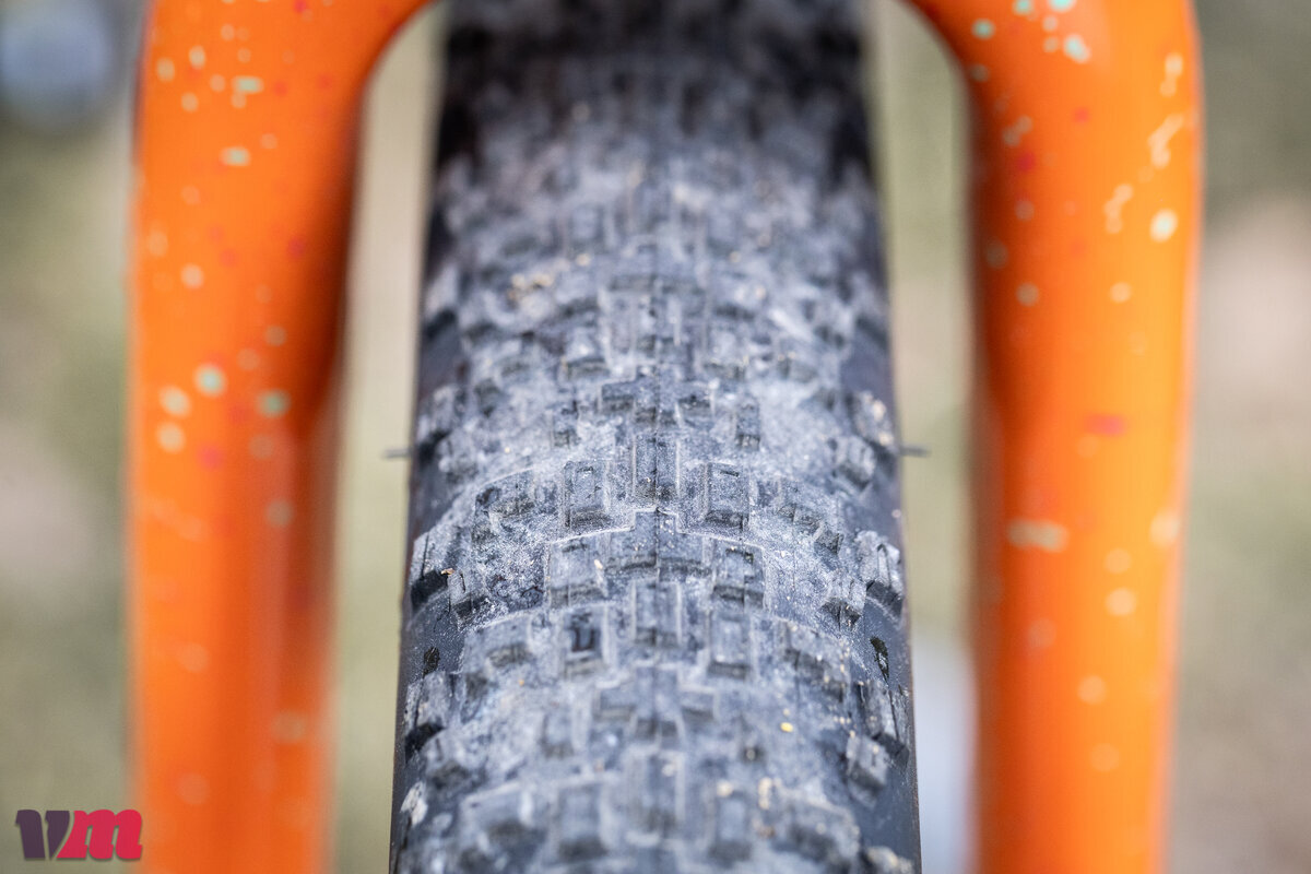 Wer vom Mountainbike zum Graveln kommt, überträgt gerne die dort geltenden Gepflogenheiten aufs Dropbar-Bike. Und das heißt für die Bereifung: In aller Regel werden an Vorder- und Hinterrad unterschiedliche Pneus gefahren. Dabei setzt man vorne den bissigeren Pneu ein, um maximalen Seitenhalt zu erhalten; hinten, wo über zwei Drittel des Fahrergewichts lasten, kann derweil auf maximalen Grip verzichtet werden. Dafür ist an dieser Stelle optimaler Rollwiderstand gefragt.