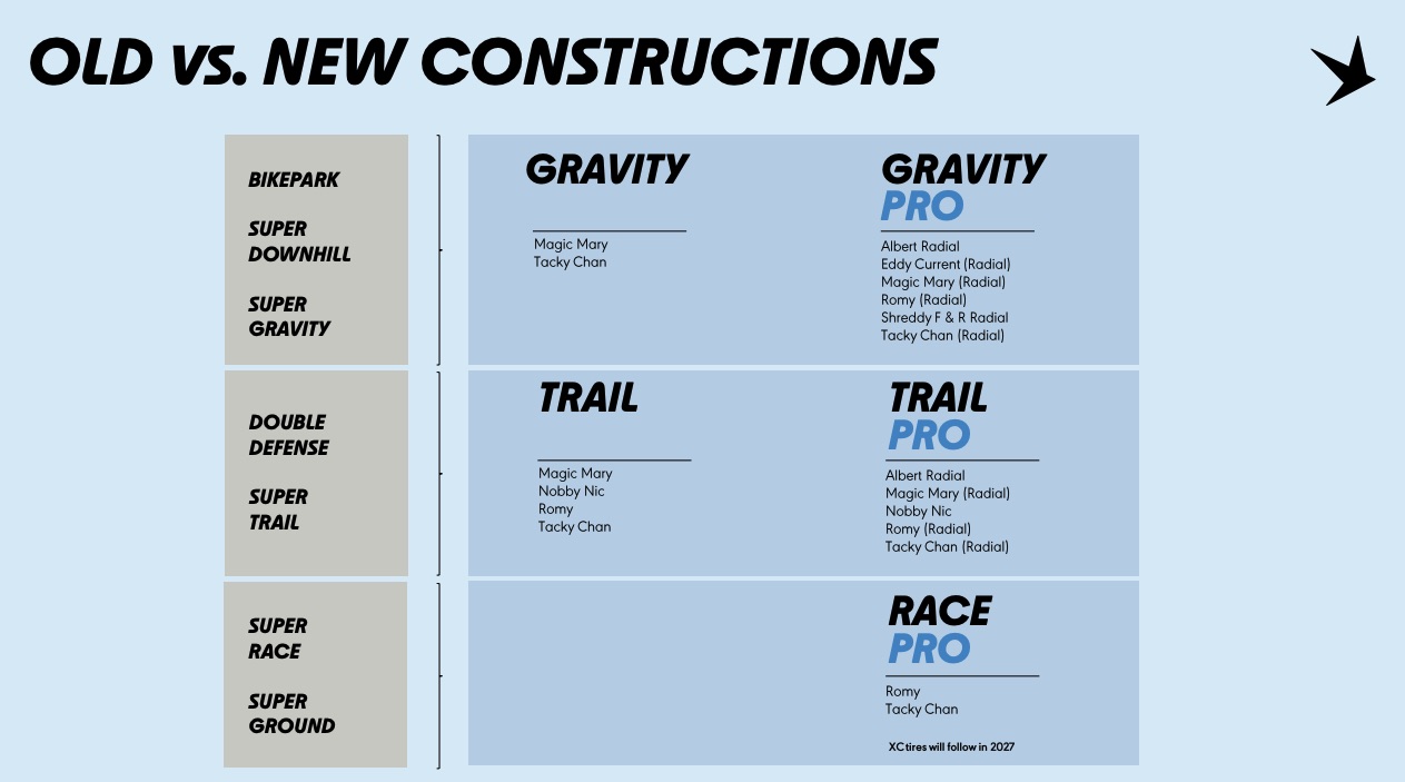 - Drei Karkassen, klar benannt nach Einsatzbereich Race, Trail & Gravity