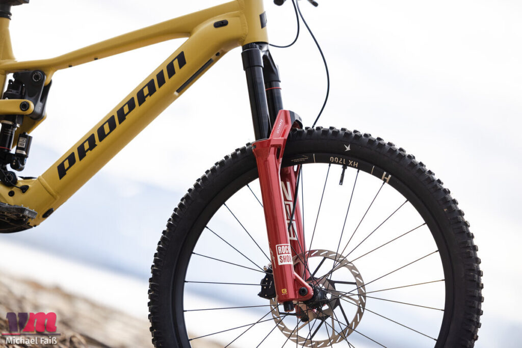 Verantwortlich für dieses enorme Maß an Laufruhe ist neben der Geometrie das Propain-eigene PRO10-Hinterbausystem. Wir müssen anmerken: Dieser Hinterbau reagiert überaus sensibel auf das Setup. Fünf PSI mehr oder weniger im Dämpfer entscheiden hier spürbar über die Performance. Man sollte sich definitiv die Zeit nehmen, den Dämpfer exakt auf das eigene Fahrergewicht abzustimmen. Hat man den Sweetspot jedoch gefunden, agiert das Ekano wie ein Staubsauger. Steinfelder und Wurzelteppiche werden einfach planiert. Das Bike verleitet geradezu dazu, die eigentlich sauberere Linie zu ignorieren und stattdessen einfach die Bremse aufzumachen und mitten durchs Grobe zu halten.