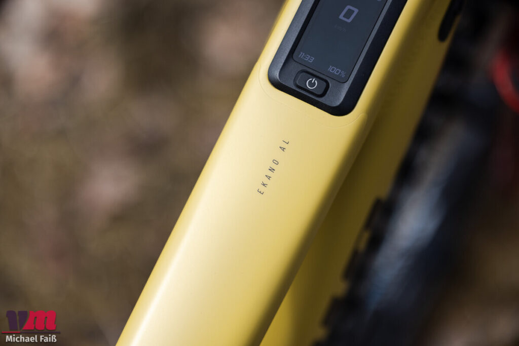 Wer die bis zu 1300 Watt des M2S Motors regelmäßig ausreizt, wird feststellen, dass selbst ein großer Akku irgendwann kapitulieren muss. Wenn man das Ekano als reines Shuttle nutzt, um die Forststraße im Eiltempo hinaufzufliegen und Laps zu sammeln, kann man den Prozenten auf dem Oberrohr-Display beim Schmelzen förmlich zusehen. Daher raten wir tendenziell zum 800-Wh-Akku, insbesondere da aktuell kein Range-Extender für das System verfügbar ist und die Akkus fest im Rahmen verbaut sind. Ein kurzer Boxenstopp lässt sich zumindest mit dem optionalen Fast-Charger im Konfigurator abmildern.