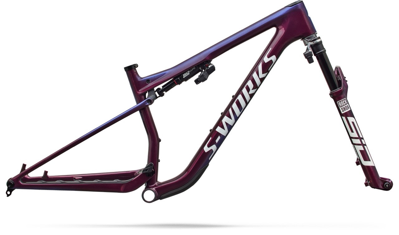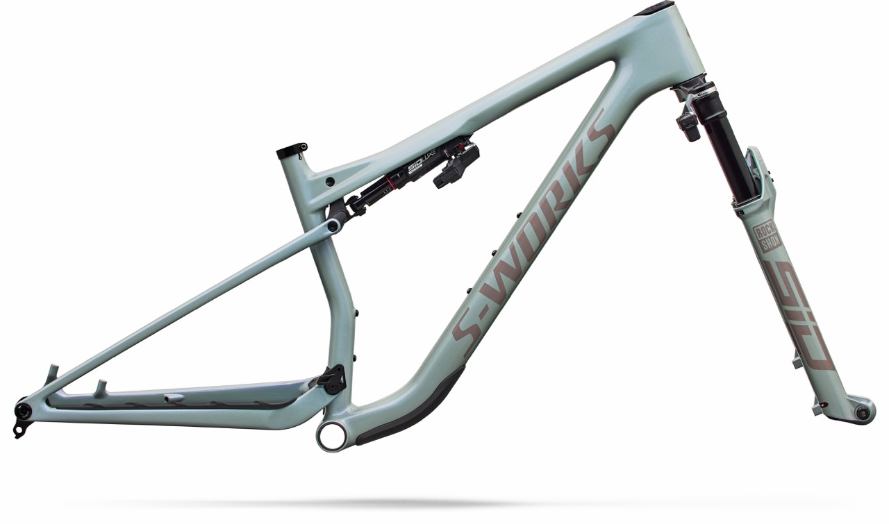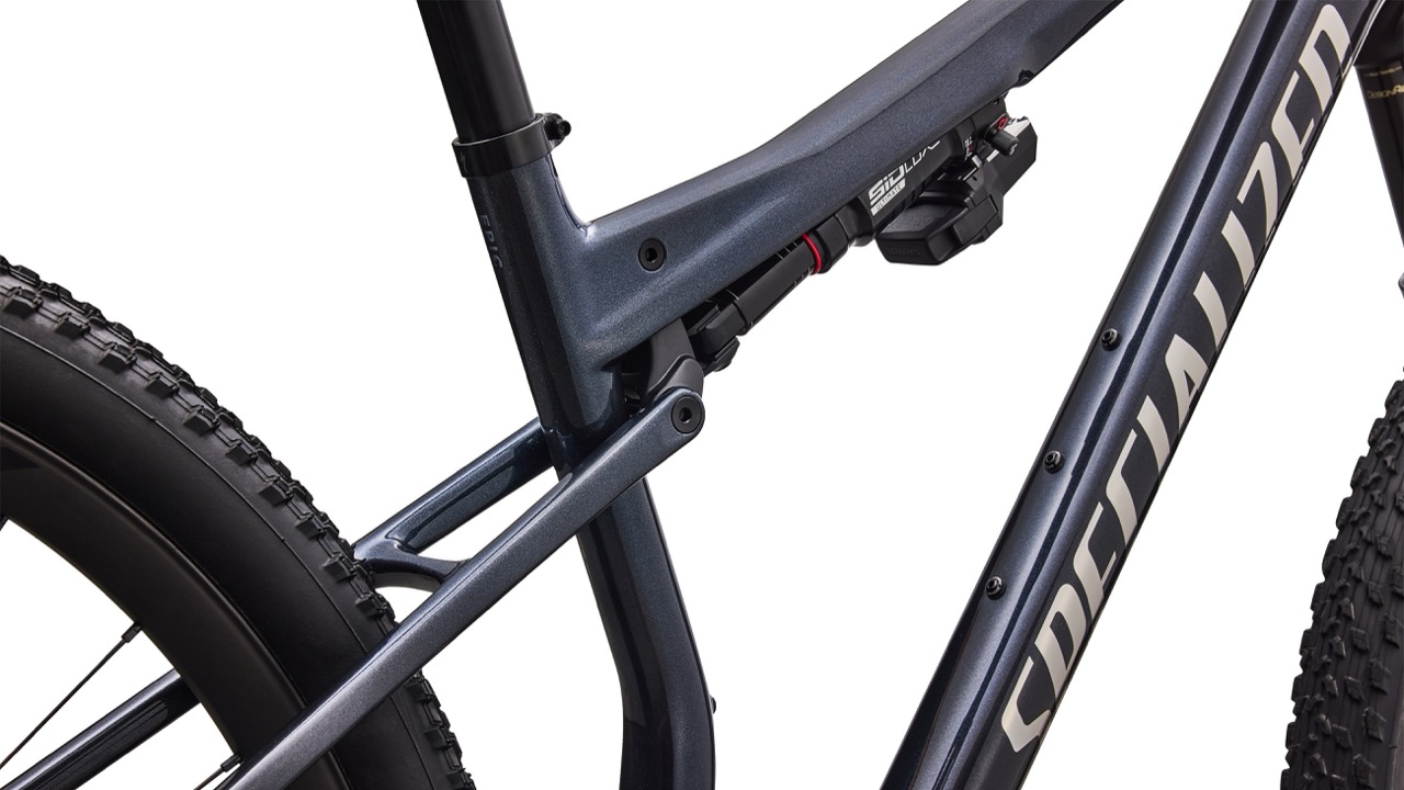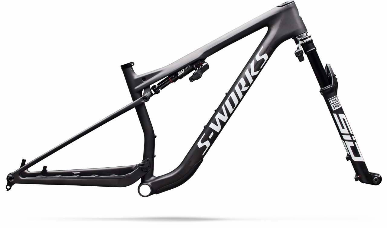 Das sensationelle Rahmengewicht erreicht Specialized durch konsequente Optimierung des Carbonrahmens. Allein am Frontdreieck will man 110 g eingespart haben, der Hinterbau bringt 37 g weniger als beim Vorgänger auf die Waage. Außerdem verzichten die Kalifornier auf ein Rahmenstaufach im Unterrohr und setzen stattdessen auf eine externe SWAT Box, die man zwischen den beiden Flaschenhaltern positionieren kann, sofern man möchte. Eine Kabelführung für das Schaltwerk sucht man ebenfalls vergeblich, der Rahmen ist optimiert für Funkschaltungen. Der Dämpfer kann hingegen weiterhin per Bowdenzug angesteuert werden. Egal ob Flight Attendant oder TwistLoc: Alle Bikes kommen mit einem dreistufigen Lockout, wobei das speziell für Specialized entwickelte „Magic Middle“-Setting für die meisten Fahrszenarien die beste Wahl sein soll.